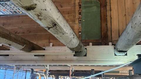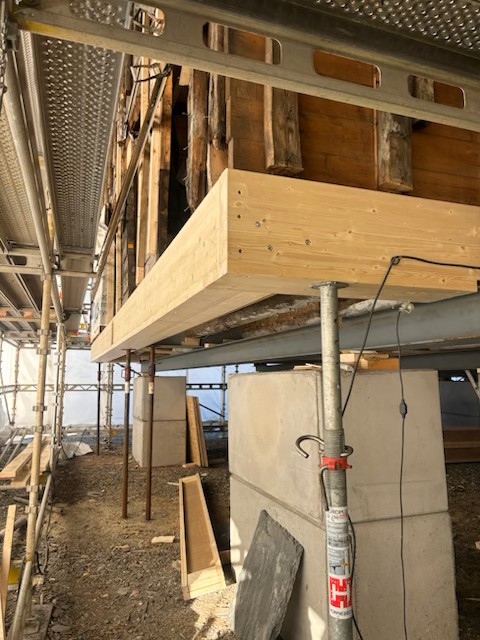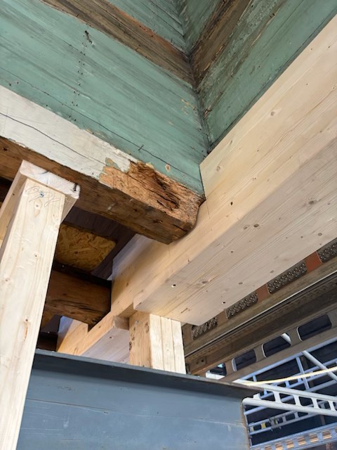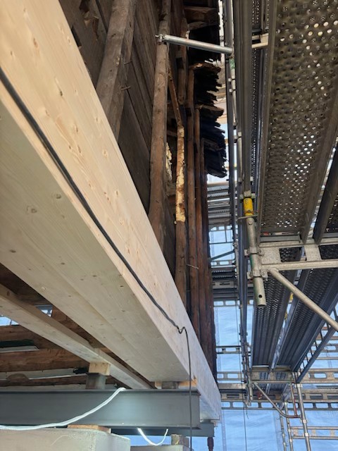 I de gamle laftekassene gjøres det nå et omfattende forsterkningsarbeid. Der tid og vær har satt sine spor, blir skadet og råttent treverk erstattet med nytt – men bare der det er absolutt nødvendig. Vi bevarer hver eneste stokk som kan reddes, og lar historien få stå i veggene videre. Den nye konstruksjonen bygges opp igjen med dyp respekt for byggenes opprinnelige uttrykk og sjel.