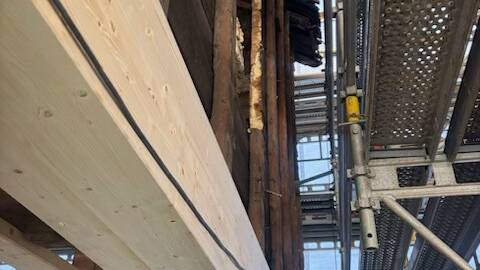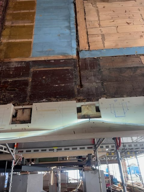 Arbeidet med Baadesgatehusene på Rosenberg er nå godt i gang, og de vernede byggene har endelig fått nytt liv etter måneder med nøysom stripping og sikring. Alt gammelt materiale som ikke kunne reddes, er fjernet med varsom hånd, mens hvert eneste element som er mulig å redde er tatt vare på med stor omtanke.