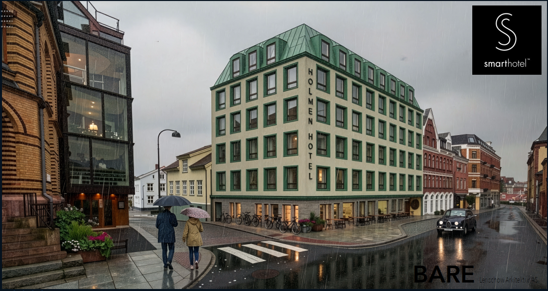 Prosjektnavnet Holmen Hotel er foreløpig, og det endelige navnet vil bli bestemt ila. 2026. Arbeidet fortsetter nå videre med å realisere et hotell som både bevarer og fornyer – til glede for både gjester og byens innbyggere!